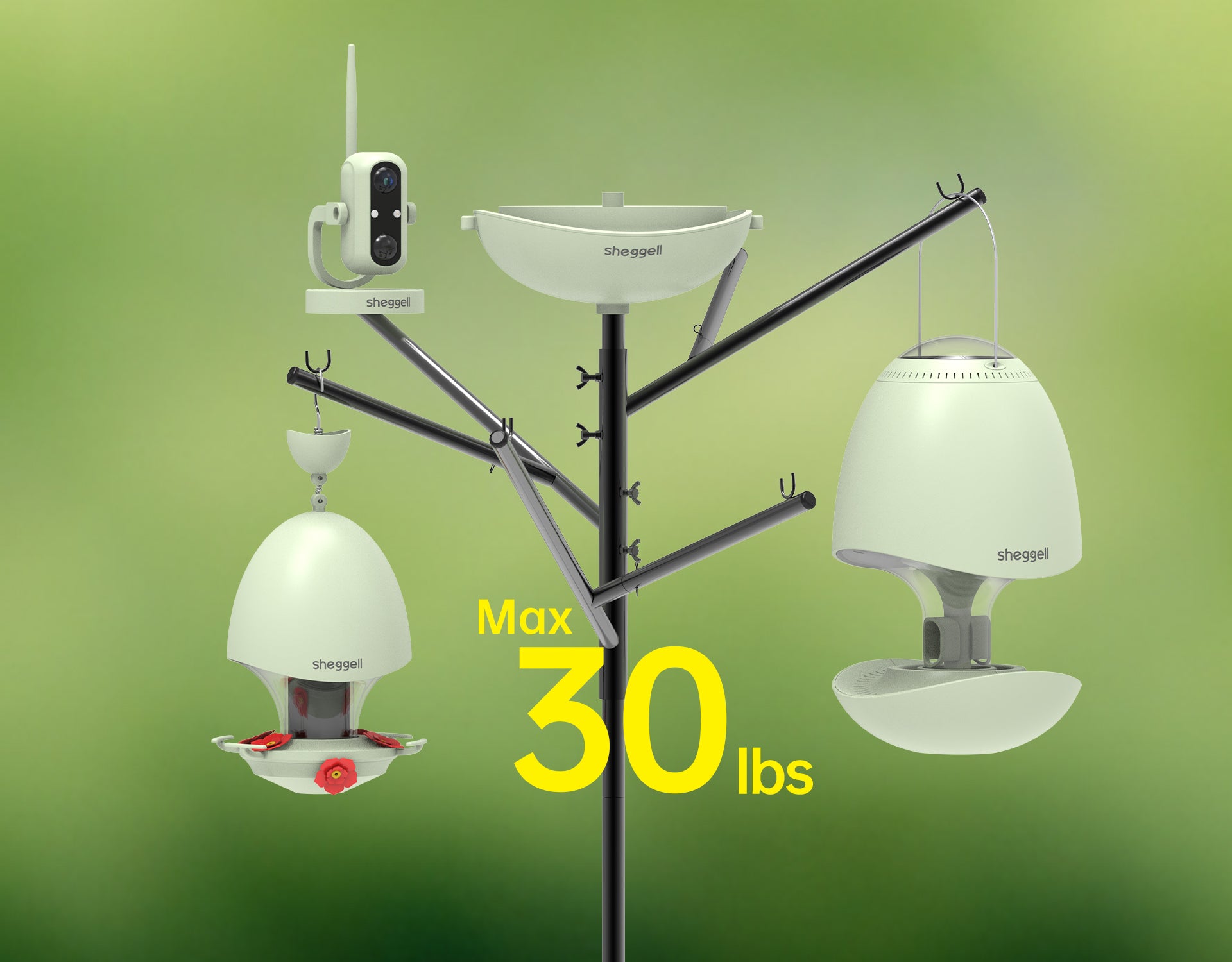 Sheggell’s branch-feeder stand offers unmatched 360° adjustable versatility, securely holding various feeders and accessories, elevating your birdwatching experience to new heights.